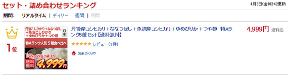 京都丹後産コシヒカリ・魚沼産コシヒカリ・北海道産ななつぼし・山形産 つや姫・北海道産 ゆめぴりか